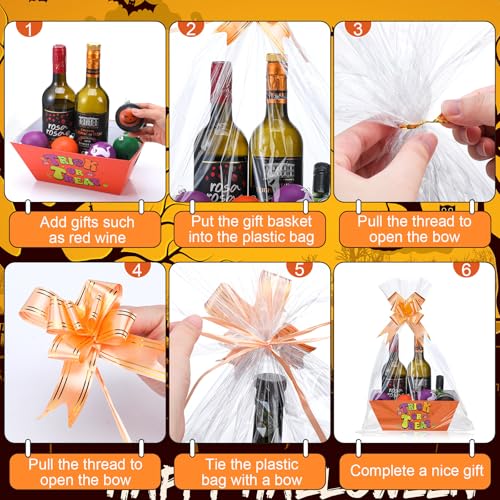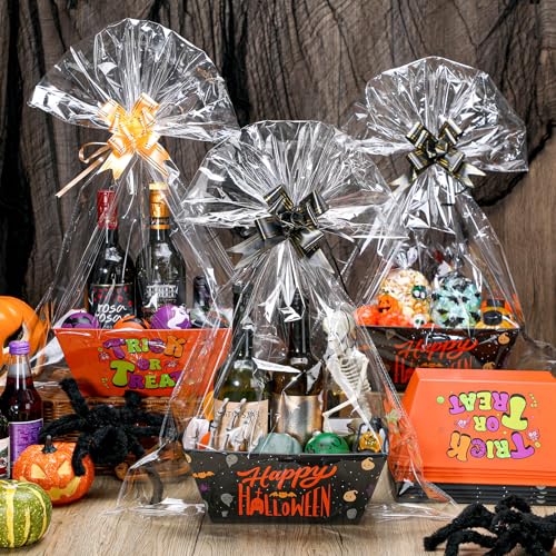 Package Content: include 12 Halloween baskets gifts empty, mainly in orange and black, 15 pull bows and 15 bags, which can make these baskets as elegant as possible, enough to meet your decoration needs in Halloween