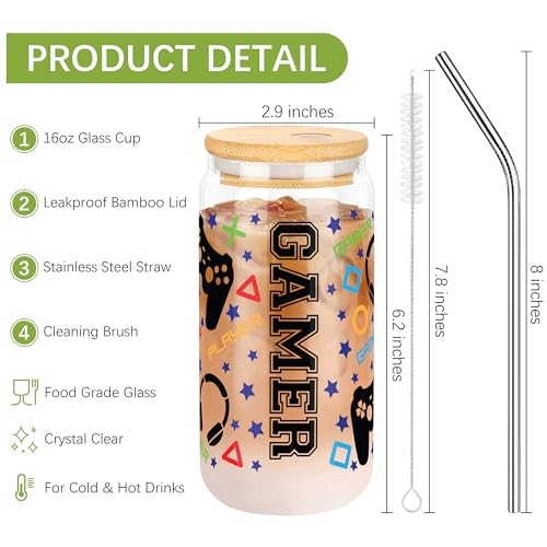 🎮 Gifts for Teen Boys: Is there someone in your life who loves gamepads? This cool 16 oz can glass comes with a lid and straw. Easy to carry, easy to clean, suitable for all kinds of drinks, do not worry about pattern falling. This cup will stay with him for a long time, and every time he uses it, he will think of you. Sometimes it’s hard to find the words to express how much you love him, and this gift is the perfect expression of your love for him. He will cherish this gift very much.