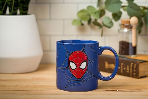 Silver Buffalo Marvel Comics Spiderman Wax Resist Ceramic Mug, 20 Ounces, Blue/Multi, 20oz