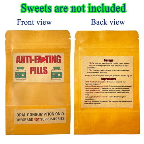 Unique and Memorable Design: The resealable pouch with a cheeky “Anti-Farting Pills” label makes this a standout novelty gift. Ideal for prank lovers and those who appreciate quirky, funny candy gifts.