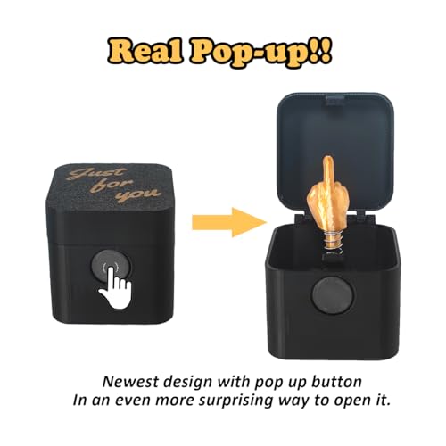 The middle finger in a box is the newest version which comes with a pop-up button, making it a great gag gifts for adults.