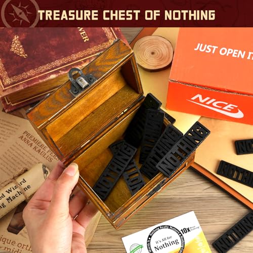 A GIFT THAT WILL MAKE THEM CHUCKLE- Our hilarious gag gift goes above and beyond to sell the prank. The wood chest has a classic 19th-century old painted appearance, making it really look like you got something for them. But there is NOTHING in it – literally 10 NOTHING wood pieces with a hilarious product info card. It will be a huge hit. Nothing brings people together like laughter.