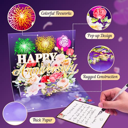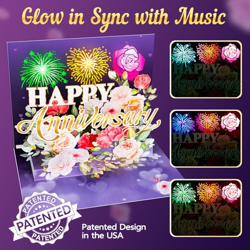 Anniversary Card, Music & Light Pop up Valentine’s Card with Fireworks Flowers Gifts for Him Her Husband Wife Couple (Purple)