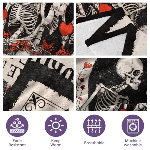 【Romantic Gifts for Her or Him】: This blanket is a unique way to remind your loved one how much you love and cherish them. The image of skeleton couples symbolizes deep love and eternal commitment, highlighting that love endures even in the face of mortality. Let it serve as a constant reminder of the warmth and affection you bring into each other’s lives