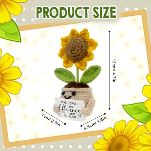 Mini Positive Crochet Sunflower, Cute Toys Cheer Up Gifts for Women, Crochet Doll with Optimistic Card for Birthday Gifts, Ideas for Friend Coworker and Desk Decor
