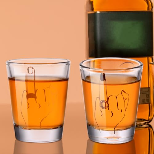Bride and Groom Glasses 2 Pieces Ring Finger Wedding Funny Bride Wine Glass 2 oz Mr and Mrs Engagement Gifts Stemless for Newlyweds Couples(Classic,1.93 Inch)