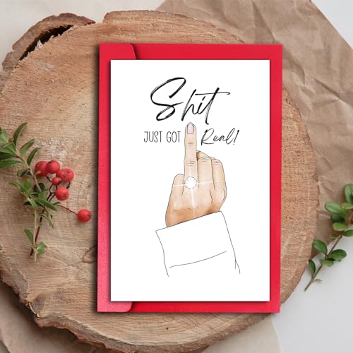 Engagement Card, Congrats Wedding Card, Engagement Gift for Women (Just Got Real)