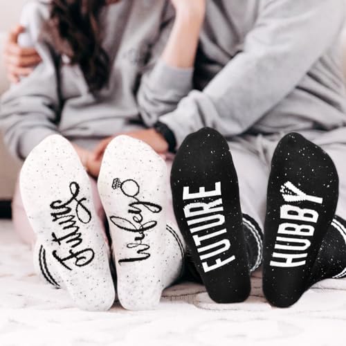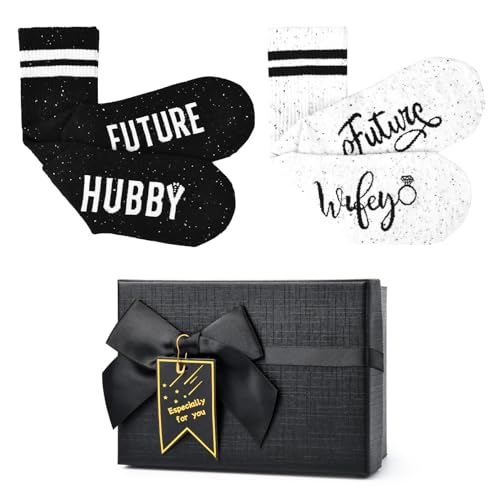 Engagement Gifts for Couples 2025, Couple Socks Bride and Groom Socks, 2 Count, Black, One Size