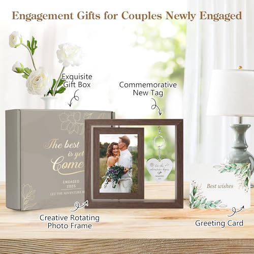 Engagement Gifts for Couples Newly Engaged:Looking for a meaningful and unique engagement picture frame? This elegant double-sided rotating photo frame is the perfect choice. It displays two cherished photos, symbolizing the bond and commitment of two hearts. Not only is it a heartfelt keepsake for preserving memories, but also a special way to celebrate your love.