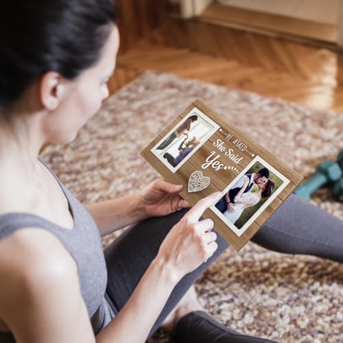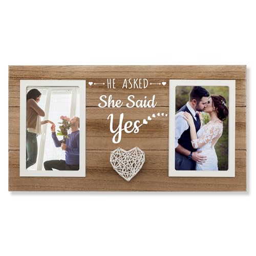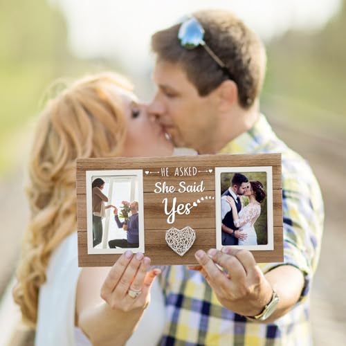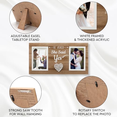 Engagement Gifts for Couples Picture Frame, He Asked She Said Yes Promposal Gifts, Holds 2pcs 4×6 Inches Photos