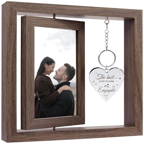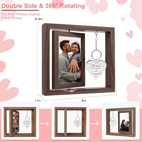 Engagement Gifts for Couples,4×6 Rotating Floating Engagement Picture Frame,Wedding Engaged Gifts for Newly Engaged Couples 2025,Cool Engagement Gifts for Women,Bride to Be Gifts