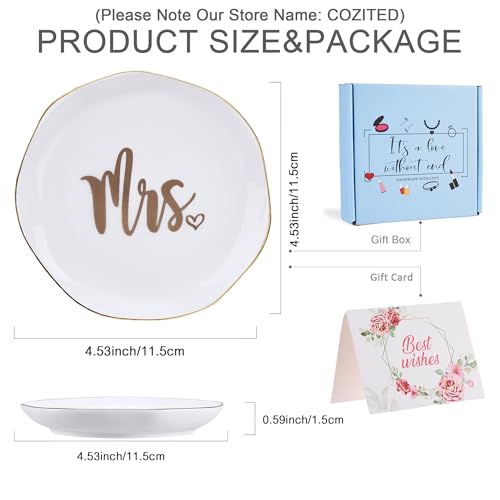 Size: COZITED Mrs. ring dish jewelry dish measures 4.53 ” Lx 4.53 ” W x 0.59 ” H, small size, but big enough to store jewelry pieces. Please note, our store name is “COZITED”