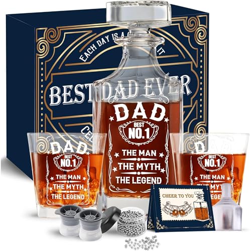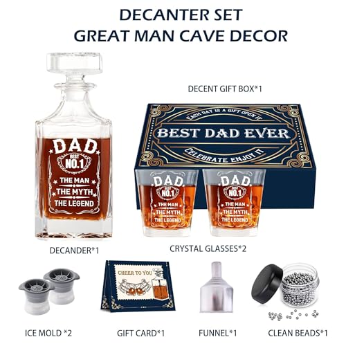 FATHERS DAY GIFTS FOR DAD: The perfect fathers day gifts for whiskey enthusiasts, our dad whiskey decanter gift set will be the best gift for classic whiskey lovers. The bottle is packaged in a beautiful box, making it a unique gift ideas for fathers day, Christmas, birthdays, and any other occasion. Your Dad will definitely be impressed by this glass bottle present