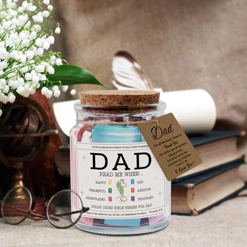 NewEleven Fathers Day Gift For Dad, Birthday Gifts For Dad From Daughter, Son – New Dad Gift, Bible Jar For Father – Decorative Glass Inspirational Scripture Jar with 92 Bible Verse