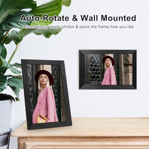 With the auto-rotation function, you can place the WiFi digital photo frame in either portrait or landscape mode, and it will automatically rotate photos to adjust the direction to fits the frame perfectly. 32GB storage space can store more than 80,000+ photos (about 300KBS per photo). Also with USB port and SD card slot to provide you more options for file storage and management.