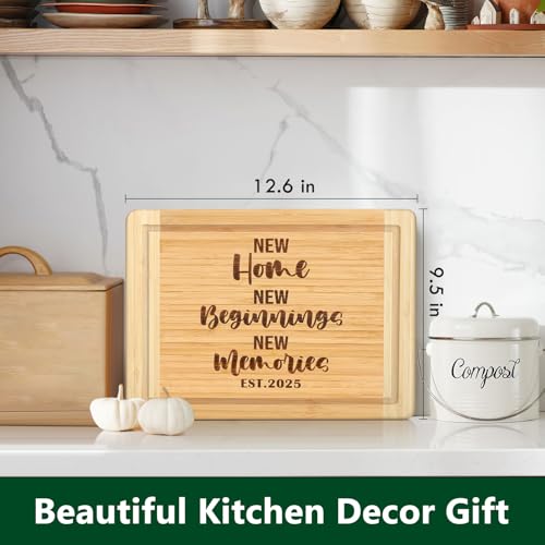 2025 House Warming Gift New Home: Hunting for an unforgettable housewarming gift? Our bamboo cutting board, with its laser-engraved “New Home, New Beginnings, New Memories EST. 2025”, is a standout. It’s a beautiful addition to any kitchen, whether displayed as a decorative piece or used for daily meal prep. This cutting board is sure to become a cherished item, making it an unforgettable gift that marks the exciting new chapter of a new home