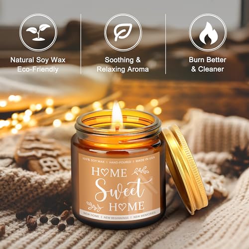 House Warming Gifts New Home Family:The cutting board is made from high-quality bamboo, with positive words engraved to express blessings and encouragement for her new life.The wooden spoon engraved with “new home” symbolizes the warm beginning of the new home. The candle is made from natural soy wax, releasing a fresh and delicate floral scent. The natural linen material of the wine gift bag makes it more breathable and durable. The salt and pepper shakers allow for easy seasoning with a simple twist.