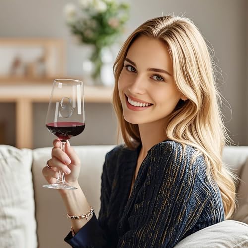 Monogrammed Wine Glass Gifts for Women – Personalized A-Z Wine Glasses with Gift Box & Greeting Card | Custom Mothers day, Anniversary, Birthday Gifts for Her, Mom, Wife, Best Friend, Sister,Woman (S)