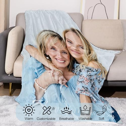 Mothers Day Personalized Gifts for Mom Custom Blanket with Picture Mothers Day Birthday Customized Gifts for Mom/Wife from Daughter Son Husband Photo Blanket