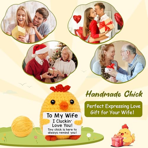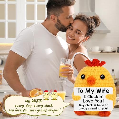 BdayPtion Gifts for Wife from Husband, I Love You Wife Gifts for Birthday Anniversary Women Gift, Romantic Couple Present, Funny Handmade Crochet Animals Chicken Christmas Mothers Day Decorations