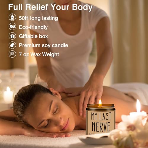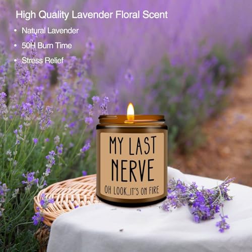 Homsolver Birthday Gifts for Women, Funny Friendship Gift for Best Friend – My Last Nerve Lavender Candle – Unique Birthday Gifts for Women, Her, Mom, BFF, Sister