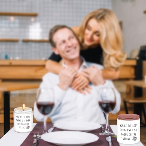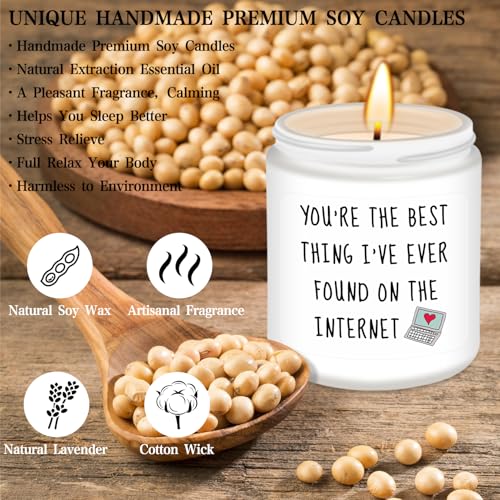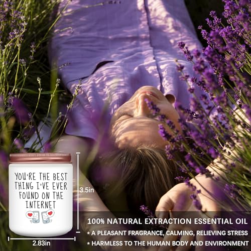 Gifts for Her: Premium quality lavender scented candles make great gifts for women. This funny scented candle features a witty and meaningful phrase to make her smile: You’re the best thing I’ve ever found on the internet! Personalized gifts for women, gifts for her, best friends, girlfriend, wife, couple, fiancee, couples, teacher, coworker, boss, neighbor, classmate, sister,bestie, or anyone else. Warm and humorous candles have a unique way of making her laugh