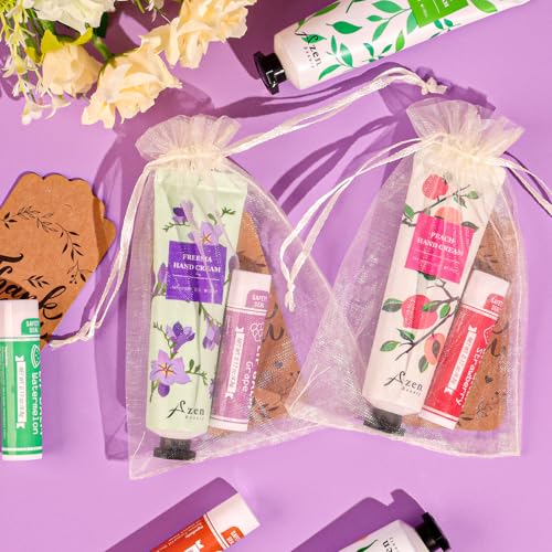 AZEN 30 Sets Bulk Gifts, Hand Cream and Lip Balm Bulk Set with Organza Bag Thank You Card, Baby Shower Wedding Gifts for Guests, Bridal Wedding Favors for Guests,Thank You Gifts for Women
