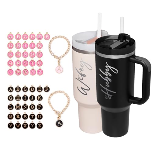 Wifey and Hubby Unique Design: This wedding gifts for couples 2024 includes two large capacity 40 oz tumbler, laser engraved with the words “WIFEY” & “HUBBY”, and two packs of A-Z 26 letter charm accessories, The newlyweds can pick any letter of the alphabet to create their own unique mug every day!