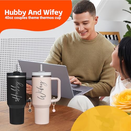 Wifey Hubby 40 oz Tumbler Cup for Couples with Handle Lids Straws Letter Charm Accessories 2 Pack Wedding Gifts for Couples 2024 Engagement gift Bridal Shower Gift for Bride Groom Newlyweds