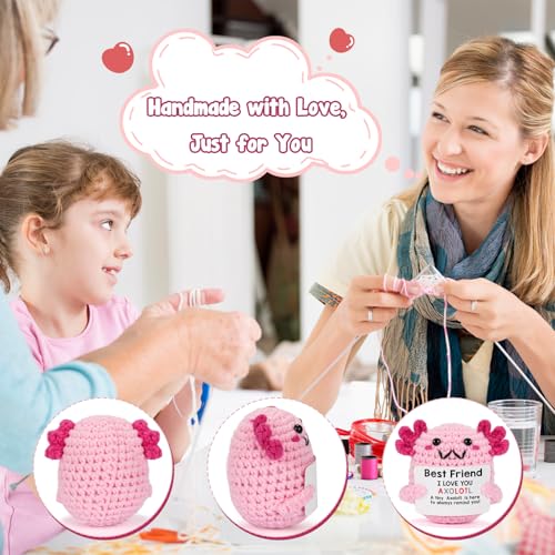 Friendship Gift Crochet Axolotl, Tiny Handmade Collectible Doll for Sisters, Coworker Work Bestie, Funny Present for Birthday, Valentines, Christmas, Easter & Mother’s Day