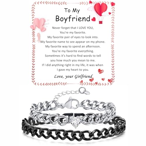 Matching Couple Cuban Chain Bracelets Gifts for Boyfriend Husband Soulmate Girlfriend Valentine Anniversary Birthday Christmas Gift for Him and Her,Adjustable Size