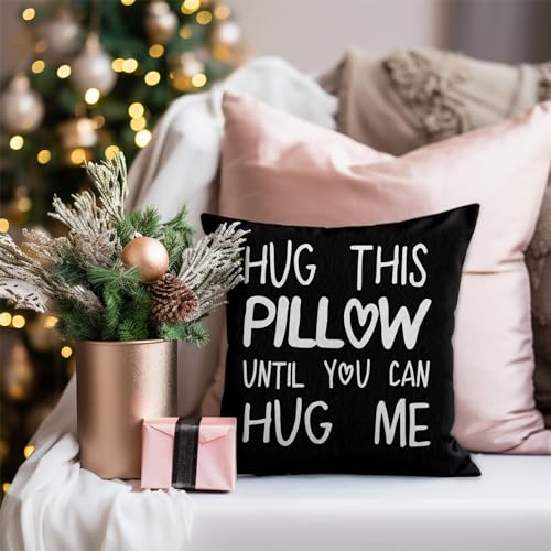 Sufamb Hug This Pillow Until You Can Hug Me Throw Pillow Covers, 18 x 18 Pillow Case, for Boyfriend Girlfriend Birthday Gifts, Long Distance Relationships Gifts (Black)(18x18in)