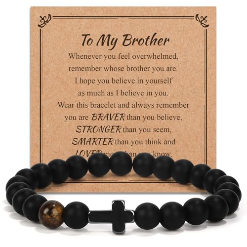 Brother Gifts from Sister, Christian Cross Bracelet Brothers Gift for Birthday Christmas Valentines Graduation Gifts for Big Brother Adult