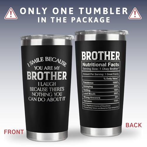 GIFTS FOR BROTHER FROM SISTER, BROTHER: This humorous tumbler celebrates the bond you share with your Brother. While it keeps his beverages at the ideal temperature, it also serves as a playful wink to your private jokes and shared laughter. Suitable for brother gifts from sister, gift for brother, big brother gifts, funny brother gifts, funny gifts for brother, brother gifts from brother, gifts for older brother, brother gifts from sister funny, …