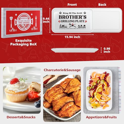 Brother Gifts:BBQ Grill Plate specially designed with patterns for brother,adds a touch of fun to life.Additionally,the milky white color contrasts beautifully with vibrant dishes,making it perfect for family gatherings,outdoor parties,poolside dining;
