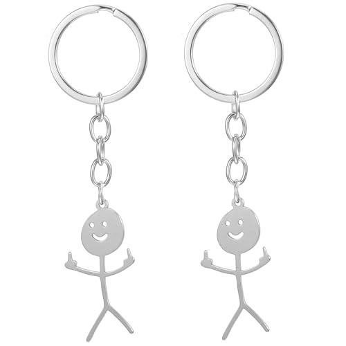 2PCS Middle Finger Keychain Funny Keychains for Men Matching Keychains for Couples Cool Gifts for Friends(Silver)