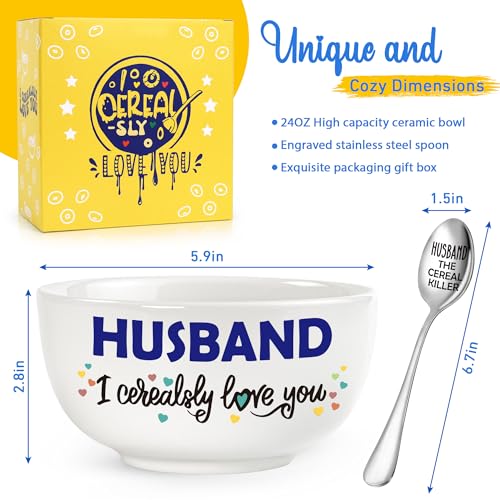 Husband Gifts for Fathers Day from Wife, I Cerealsly Love You, Funny Gifts for Husbands Birthday Wedding Anniversary, Best Husband Ever Gift, Cereal Bowl Presents Box