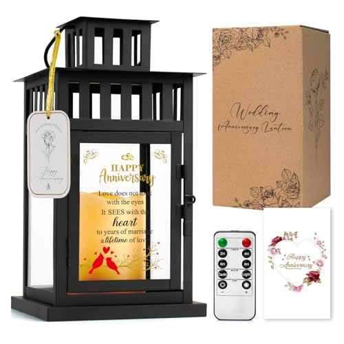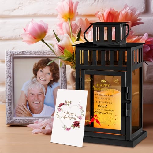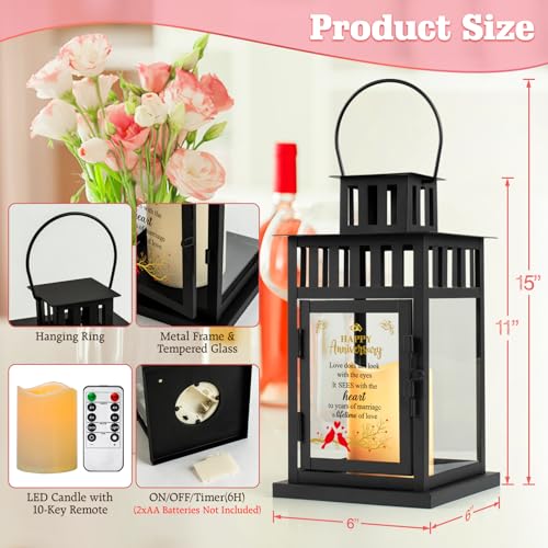 Unique Design: This beautifully handcrafted metal lantern can hang or sit anywhere and is the perfect wedding anniversary gift ideas for a special couple. The classic design speaks of the precious golden years they have had as a married couple. This is a romantic anniversary to commemorate the every day we have spent together, may our love bloom forever! Size: 15 x 6 x 6 inch, built-in timed LED candle. The lantern comes with a blessing cards for easy gift giving.