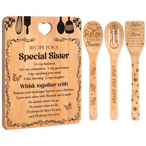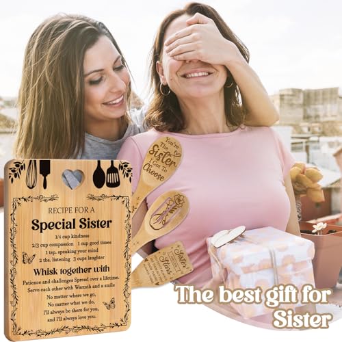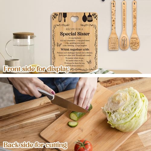 Gifts for Sister – “Recipe for a Special Sister” Sister Birthday Gifts Cutting Board Set, Bamboo-Made Engraved Utensil Set Sister Gifts, Birthday Gifts for Sister from Sister