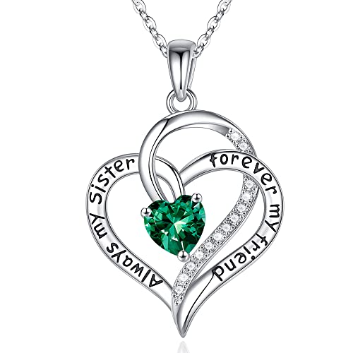 Iefil Sister Gifts Birthstone Necklaces, 925 Sterling Silver Birthstone Necklace Sister Jewelry