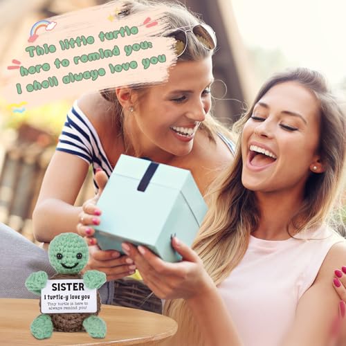 Mini Funny Turtle Sister Gifts Birthday, Soul Sister Friend Gifts for Women Girls Presents, I Love You Small Cute Stuff Things, Handmade Emotional Positive Crochet Turtle