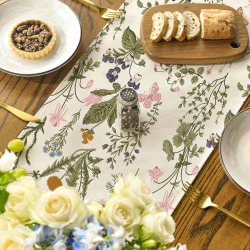 Artoid Mode Wildflowers Floral Spring Table Runner, Seasonal Summer Butterfly Kitchen Dining Table Decoration for Home Party 13×72 Inch