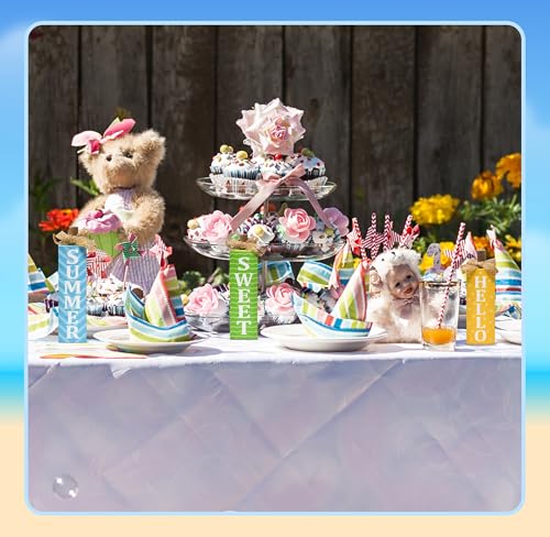 Beautiful Intricate Design: 3 Magnificent summer themed table topper features 3 designs with burlap bows: blue aqua with summer printed on it, green with white sweet printed on it, yellow with hello printed on it; the beautiful and lovely colors will lighten up your home