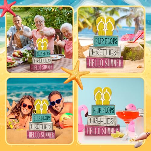 4 Pcs Summer Table Decorations Wooden Sign Flip Flops Table Centerpiece Summer Tiered Tray Decor Decorative Faux Book Stack Block for Coffee Fireplace Mantel Floating Shelf Hawaii