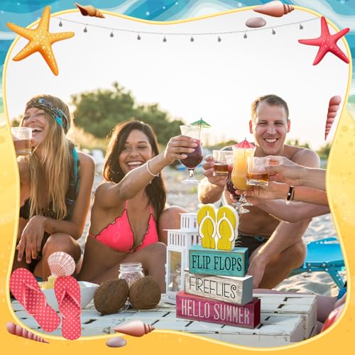 Summer Day Tiered Tray Decor: summer Day Decoration Set features a classic heart and book shaped design, with 4 wooden sign Includes 1 flip flops and 3 wooden decorative books, summer table decoration is suitable for parties