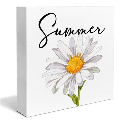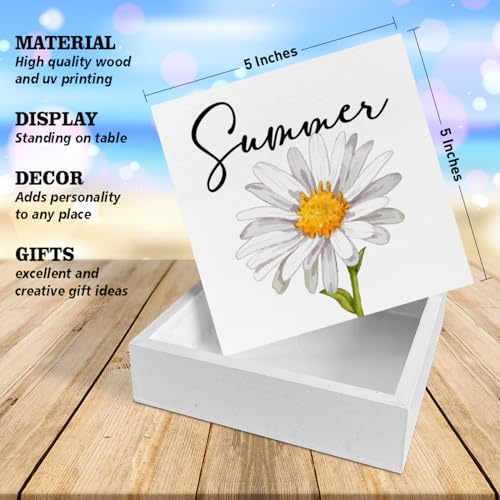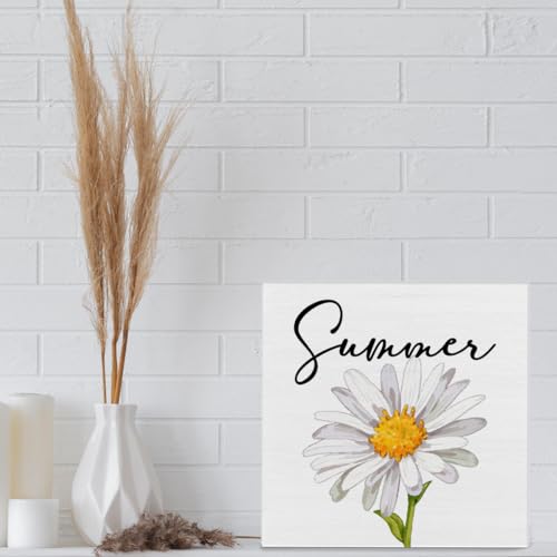 Summer Decor, Country Daisy Summer Wooden Sign Decor Desk Sign Summer Wooden Block Sign Rustic Home Shelf Wall Decoration