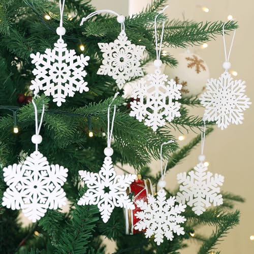 Perfect for Festive Decor: These 16 white wooden snowflakes ornament are a great addition to your Christmas decoration. Whether for your tree,wreath, or winter scenes, they add a magical, wintry touch to any setting