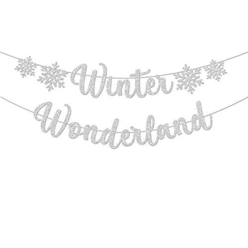 3Pcs Winter Wonderland Banners, Glittery Snowflake Banner Christmas Decorations Banners Winter Holiday Garland Photo Props Banner for Party Home Decor (Silver Blue)