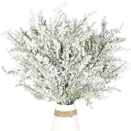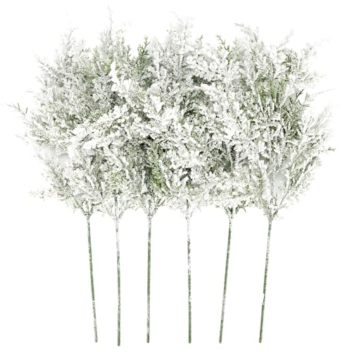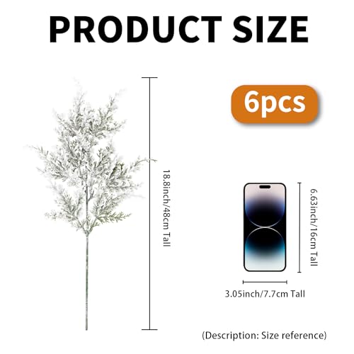 Package Includes: You will receive 6 pieces snowy artificial cedar pine branches,size measure about 17.7 Inches. You can use them to decorate the Christmas tree at home, rooms and other places, or DIY with friends.