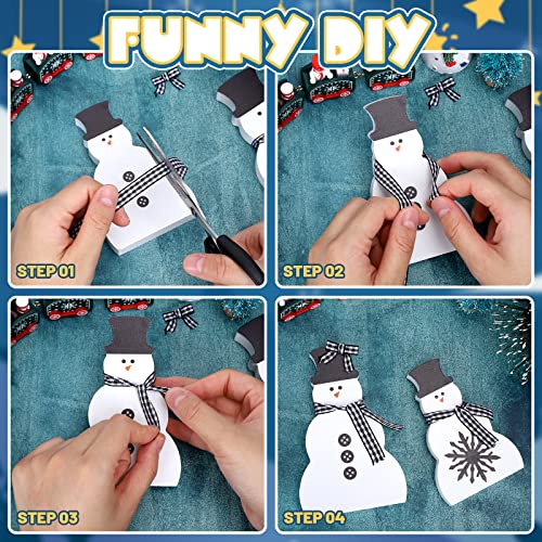 Whaline 3Pcs Christmas Snowman Wooden Decorations Black White Wood Centerpiece With Plaid Ribbon Xmas Tiered Tray Decor Rustic Blocks for Home Mantel Fireplace Tabletop